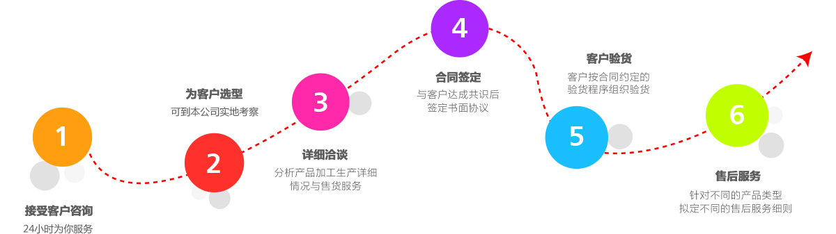客戶認可后 ,公司派出業務主管上門詳細洽談,建立客戶關系,分析產品加工生產的詳細情況,與客戶交談生產、供貨、售前服務,售中服務和售后服務事項。