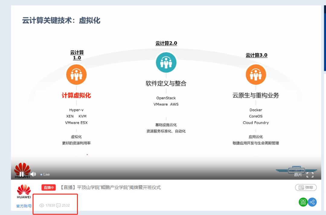 2月19日,由中原鯤鵬生態(tài)創(chuàng)新中心與平頂山學院合作打造的“鯤鵬產(chǎn)業(yè)學院”揭牌暨開班儀式正式舉行。這是全國首個鯤鵬產(chǎn)業(yè)學院,由華為云鯤鵬人才培養(yǎng)專家服務(wù)交付,中軟國際教育科技集團提供基于華為云鯤鵬云集學習、實驗、實訓為一體的智慧學習平臺。此項舉措,是在疫情特殊期間為做好防控工作,響應(yīng)河南省教育廳指示首次采取線上授課方式保障停課不停學。本次“鯤鵬產(chǎn)業(yè)學院”開班儀式采用華為云Welink平臺在線舉行。