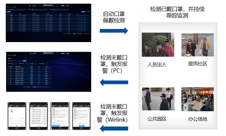 ①口罩監(jiān)測,對園區(qū)人員是否佩戴口罩進(jìn)行監(jiān)測告警