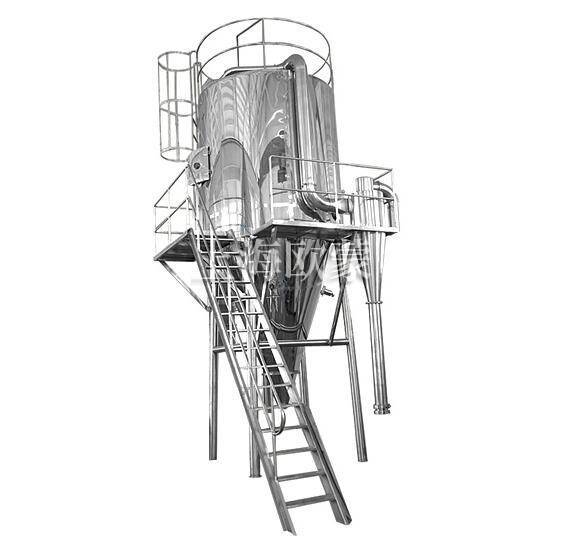 壓力式噴霧干燥制粒機是采用壓力式霧化器借助隔膜泵的壓力將溶液或漿狀的物料粒霧化成細微液滴,使表面積顯著增大,經與熱風進行充分熱交換得以快速干燥(十幾秒或幾十秒),從而得到粉體或細小粒產品的設備。
